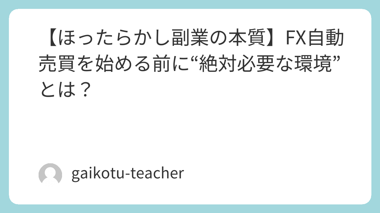 | PCの電源が落ちた | トレード停止 = 機会損失 |